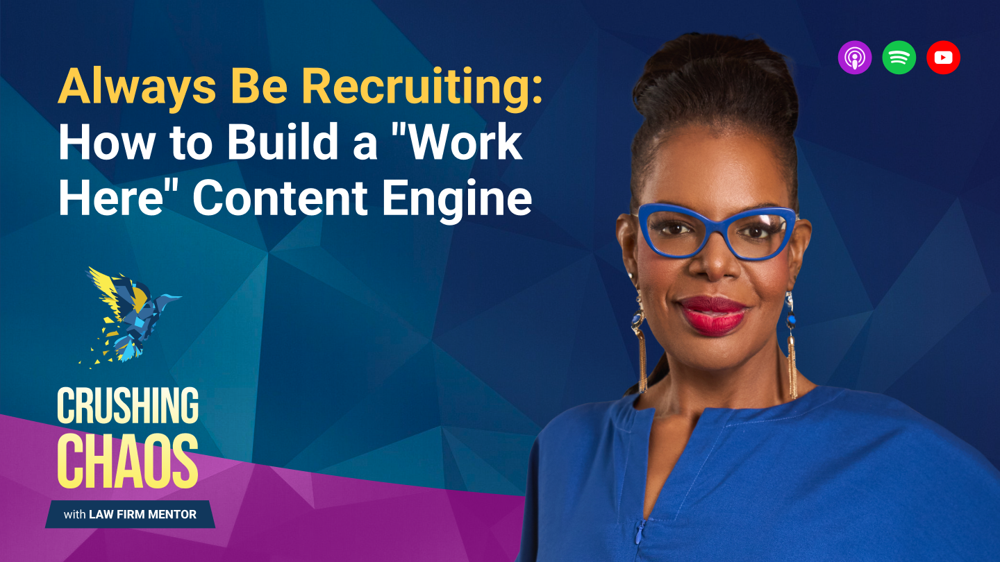 Many law firm owners think recruiting is something you do only when you need to hire. A role opens, you post a job, review resumes, and hope the right candidate appears. But in this episode of Crushing Chaos with Law Firm Mentor, Allison Williams explains why that reactive approach limits growth—and how building a content engine can transform your recruiting strategy into a scalable advantage.